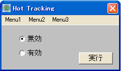例では、マウスがメニュー項目上にあるかどうかの監視を有効・無効に設定しています。